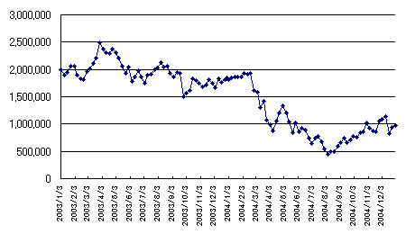 上のグラフを見れば明らかですが、私は長期的に見れば全く有効ではない手法で